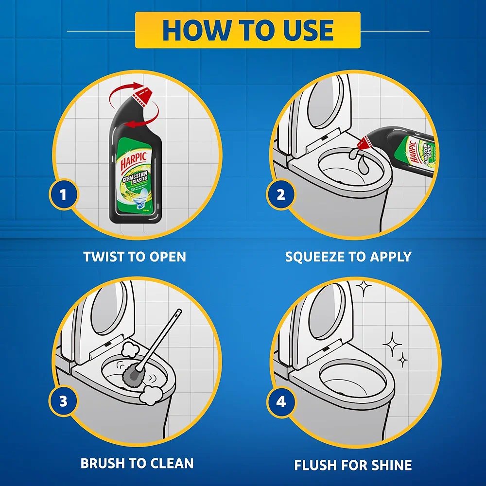 Harpic Toilet Cleaner Liquid Germ & Stain Blaster 750ml