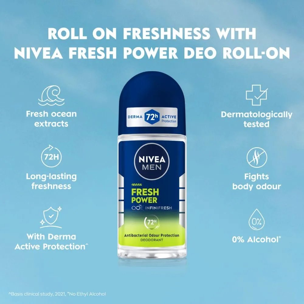 Nivea Men Fresh Power Deodorant Roll On 50ml - Image 6