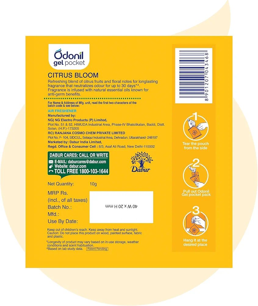 Home Air freshener Odonil Gel Pocket Citrus Bloom 10g