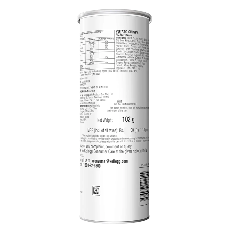 Pringles Potato Chips Pizza Flavour 107g - Image 3