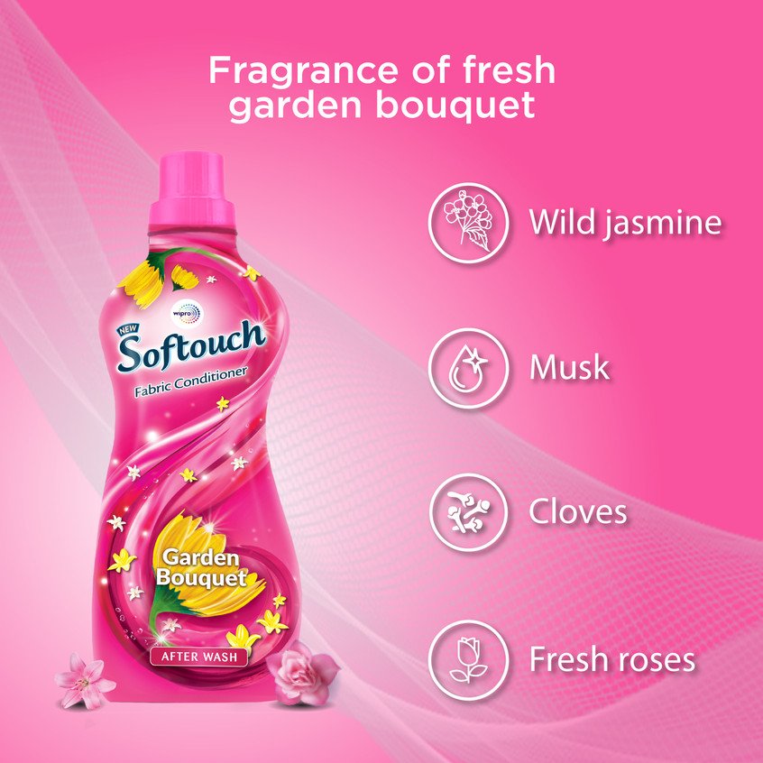 Softouch Garden Bouquet Wild Jasmine, Musk, Cloves, & Fresh Roses Fabric Conditioner 800+210ml