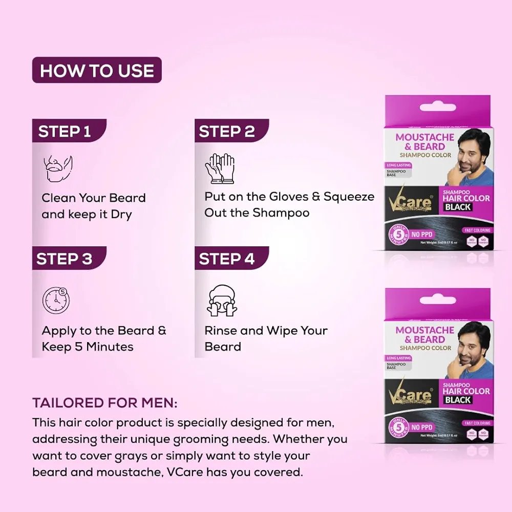 Vcare Moustache & Beard Shampoo Colour Black 17ml