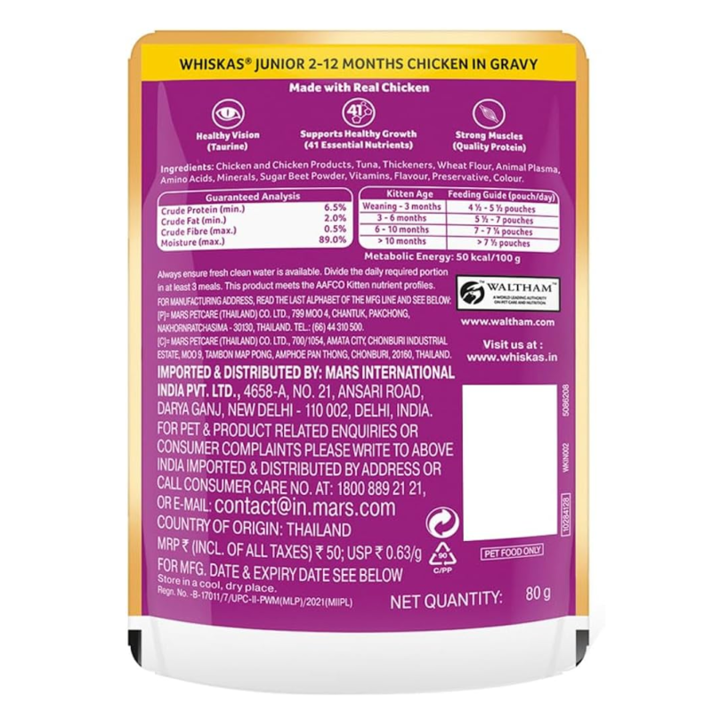 Whiskas Cat Food Kitten 2 – 12 Month Chicken In Gravy 80g